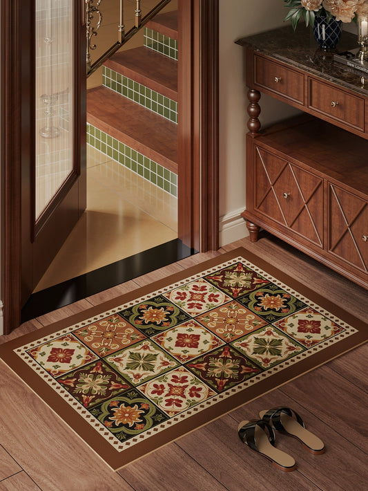 Selena French Retro Leather Doormat - Non-Slip Washable Dirt-Resistant Entryway Rug Antique Floor Mat Decor