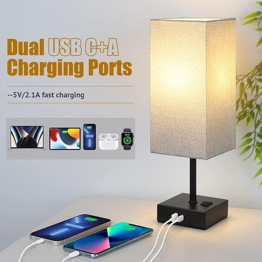 Bedside Table Lamps with USB Charging Ports Set of 2