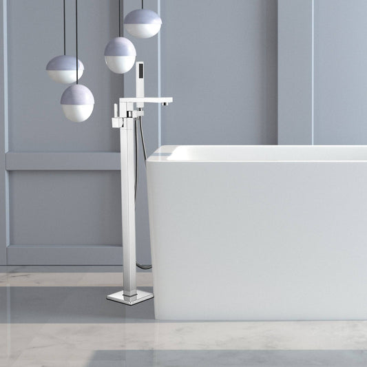 VENETIO Single Handle Floor Mounted Freestanding Tub Filler Sliver Square Faucet With Hand Shower