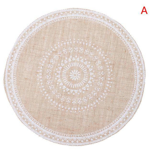 VENETIO 15 Inches 1Pc Round Delicate Embroidery Non-slip Heat Insulation Dining Table Placemat Dessert Pan Coffee Cup Mats