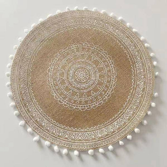 VENETIO 1Pc Creative Jute Table Placemats Resistant Heat Non-Slip Home Linen Fabric Washable Bowl Cup Mat