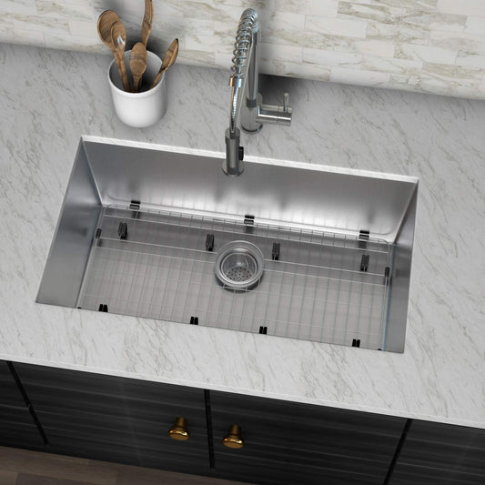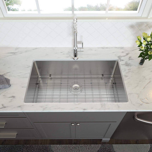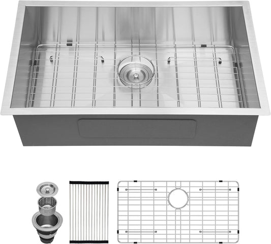 VENETIO 30" Undermount Stailess Steel Single Bowl Kitchen Sink, 16 Gauge with Strainer & Bottom Grid