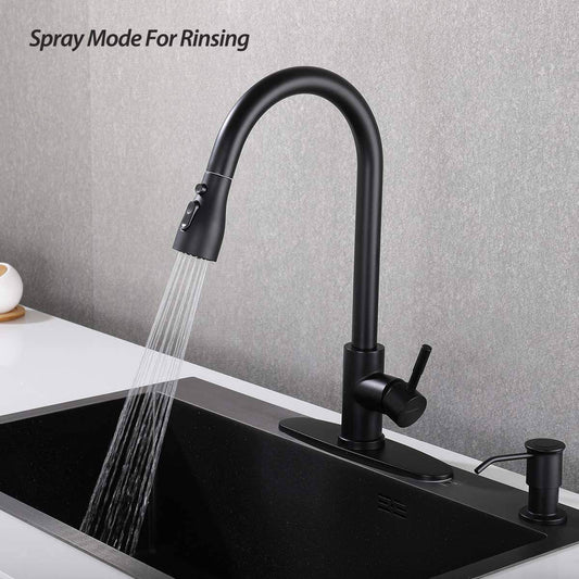 VENETIO Matte Black Kitchen Faucet, Single Hole Faucets for Kitchen Sinks, Stainless Steel Kitchen Sink Faucets with Pull Down Sprayer