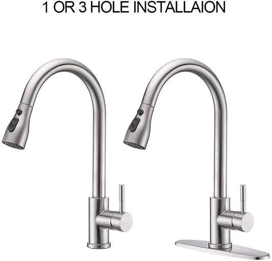 VENETIO Stainless Steel Kitchen Faucets, High Arc Single Handle Pull out Brushed Nicke, Single Level with Pull down Sprayer