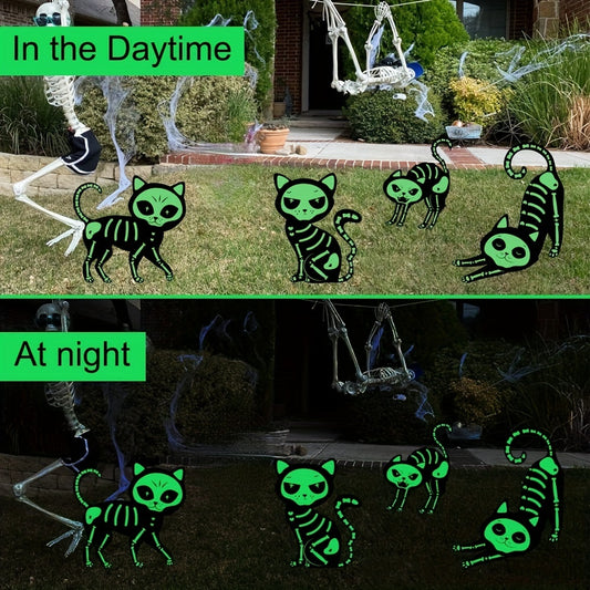 Fluorescent Black Cat Yard Signs Halloween Decorations 4pcs
