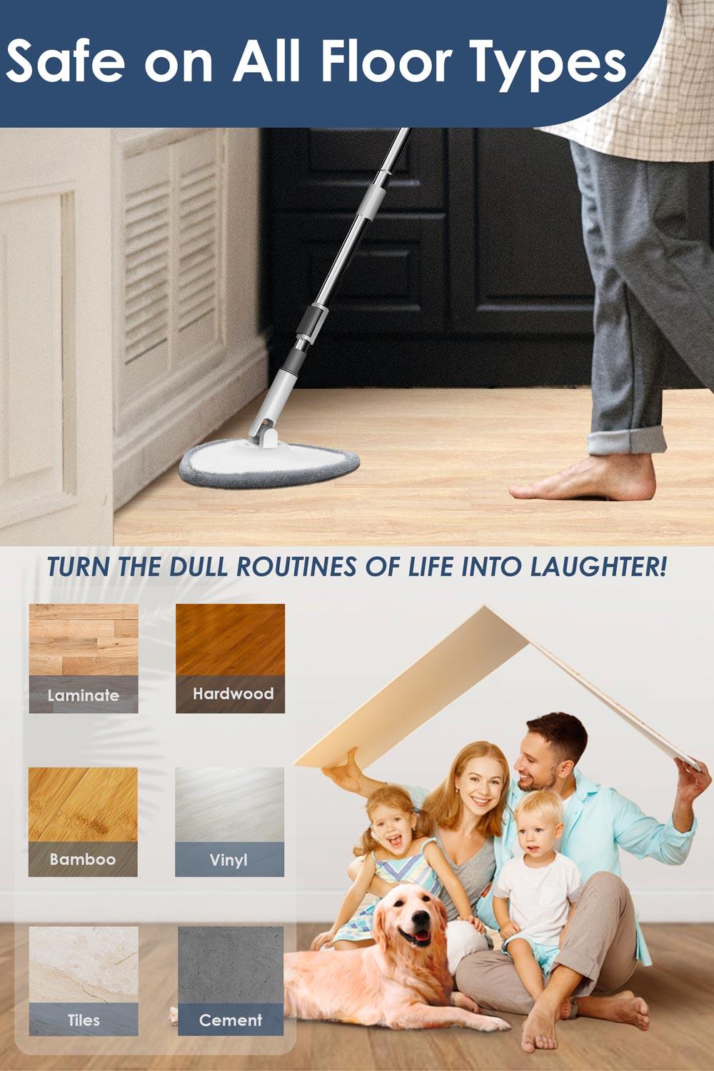 • 🏠 MOPPING MADE FUN AND EASY — Upgraded adjustable telescopic mop handle that effortlessly extends from 40.35" to 50". Ergonomic Designed that Make Cleaning Easy While Saving You From Fatigue.
