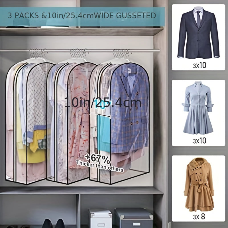 VENETIO 3pcs Transparent Clothes Dust Cover - Hanging Garment Bag for Dresses, Coats, and Suits - Thickened Wardrobe Dustproof Storage Bag ➡ SO-00047