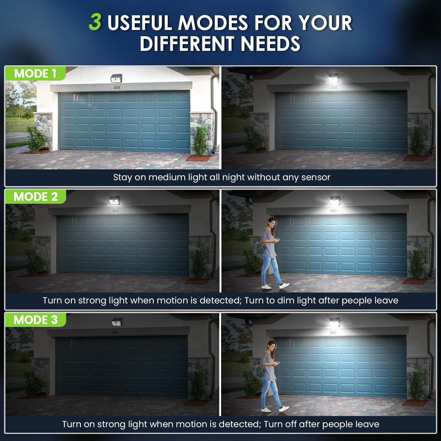 - Durable Waterproof Design: Our solar lights are made of durable ABS material and can withstand extreme weather conditions. The IP65 waterproof rating ensures that security lights will not yield in rain, snow, or sleet. Therefore, on stormy nights, thieves who want to take advantage will also be scared away by our security lights.