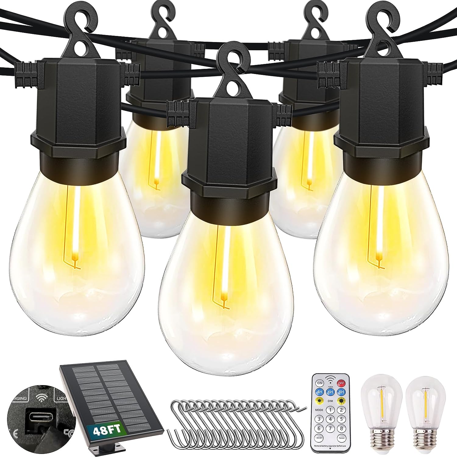 - SUITABLE FOR MULTIPLE SCENARIOS——Bright 3000K warm white light bulb string with hooks can be placed in the yard, patio, tent, roof and other outdoor places, to create a happy and pleasant party atmosphere, to create a happy and pleasant party atmosphere. If you in use process have any questions, please feel free to communicate with us, we are committed to let every buyer has a perfect shopping experience!
