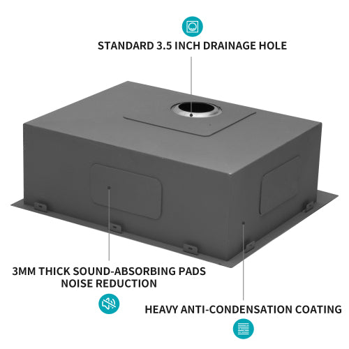 Coating and Silencer Pad: There is a thick coating on the outside of the sink to prevent condensation caused by weather changes. In addition, the 3mm thick rubber silencer pad can greatly reduce the noise from the faucet and give you a quieter cooking environment.