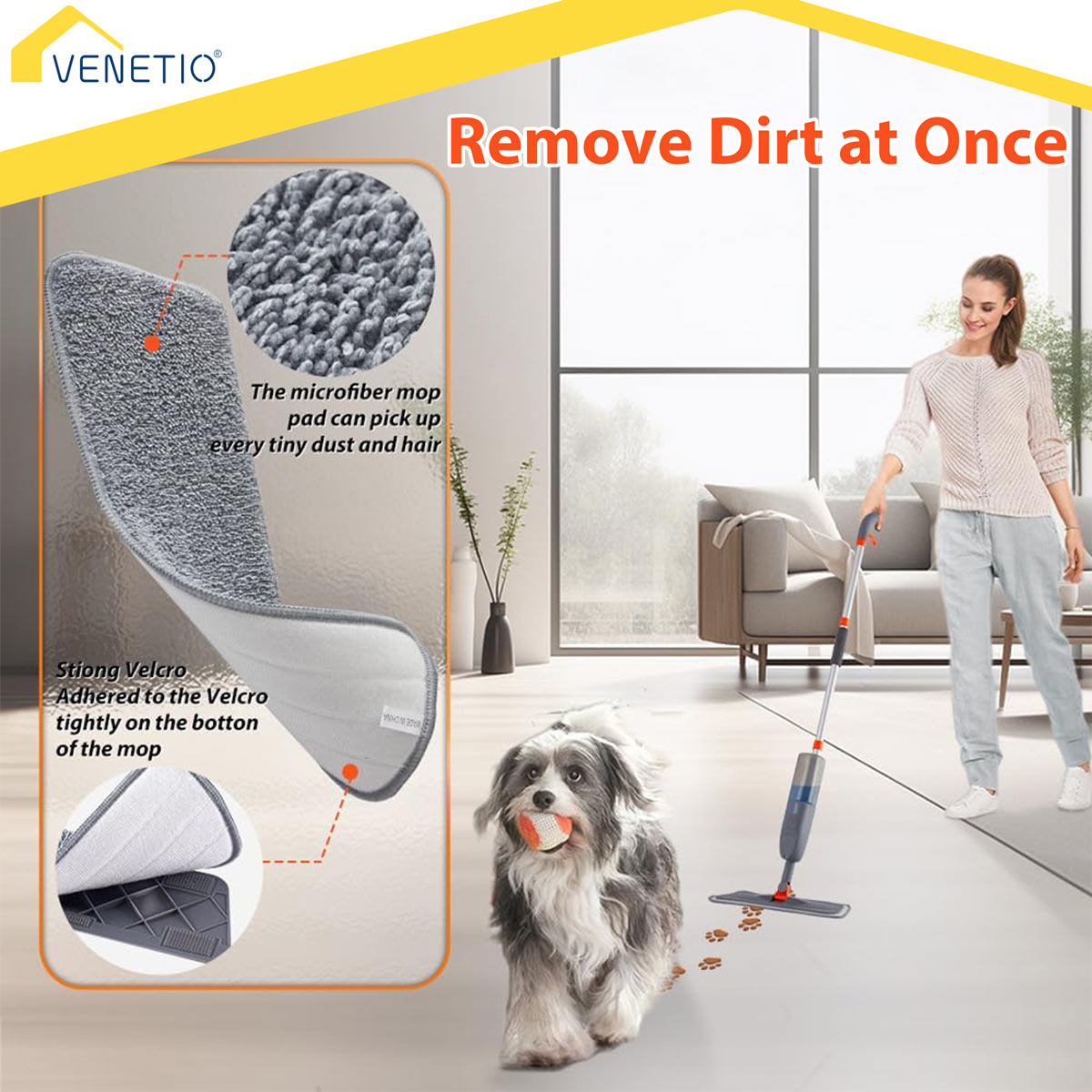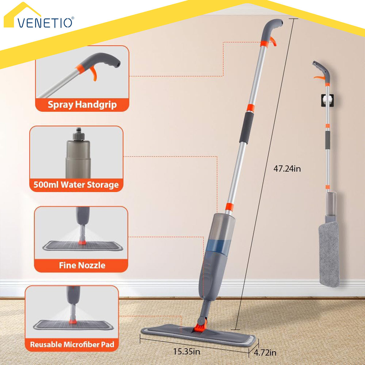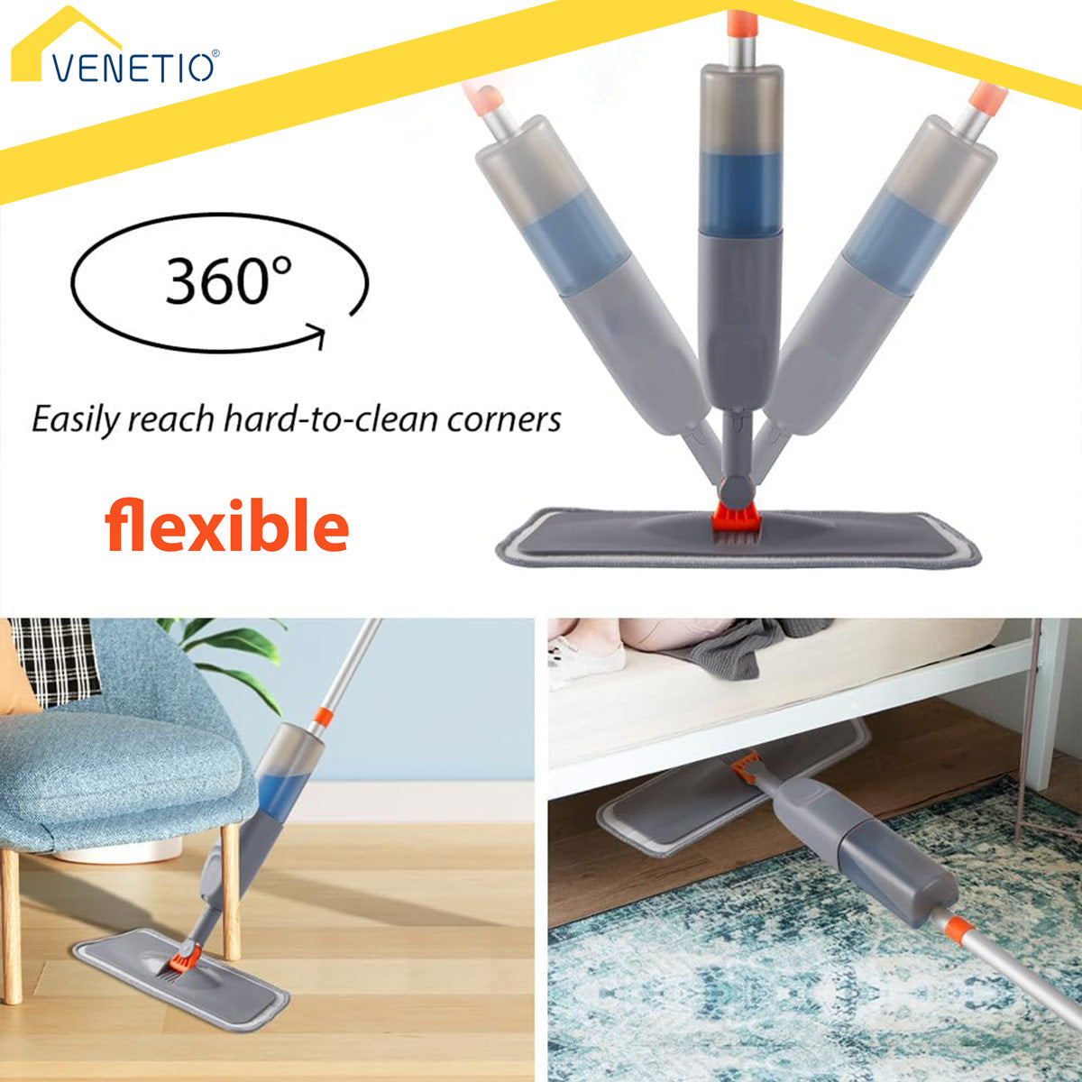 🏠 [360° Swivel Head] This floor mop features a flexible and durable 360° swivel head, reaching every nook and cranny in your home. The slim design of the wet spray mop head effortlessly cleans under furniture.