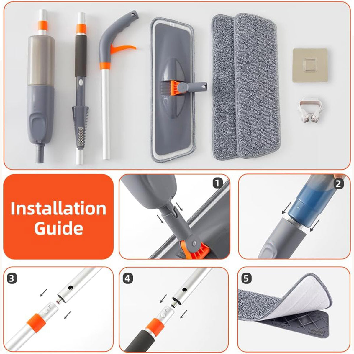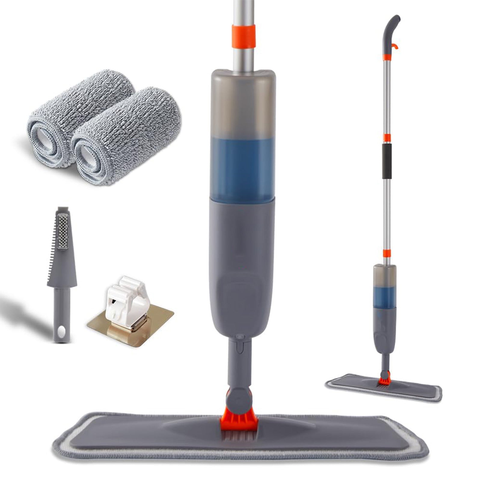 🏠 [Comprehensive Package] Your purchase includes 1 flat mop with a built-in spray, 3 mop replacement cloths (1 pre-installed), a cleaning scrubber, a mop clip, and a 500ml spray bottle.
