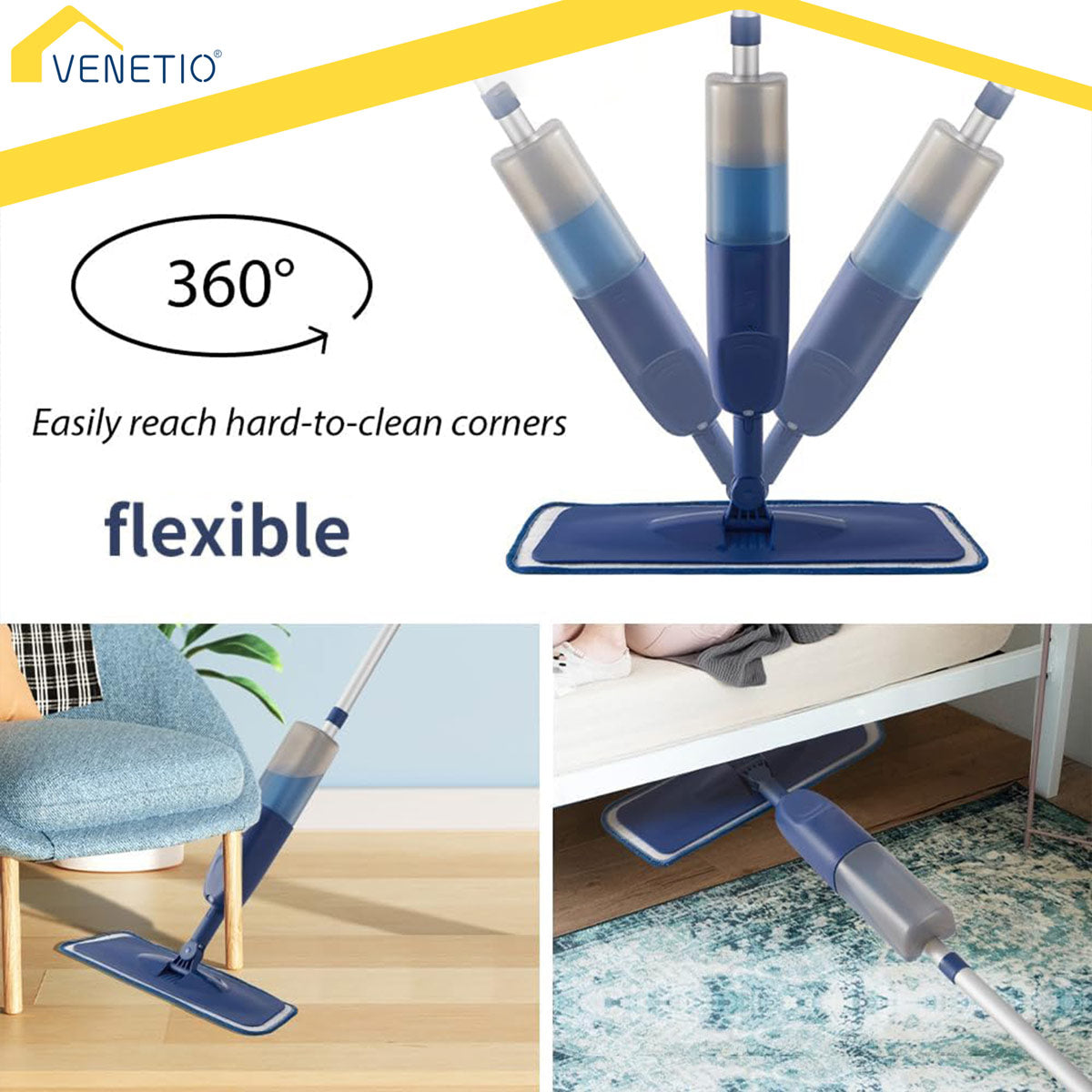[360° Swivel Head] This floor mop features a flexible and durable 360° swivel head, reaching every nook and cranny in your home. The slim design of the wet spray mop head effortlessly cleans under furniture.