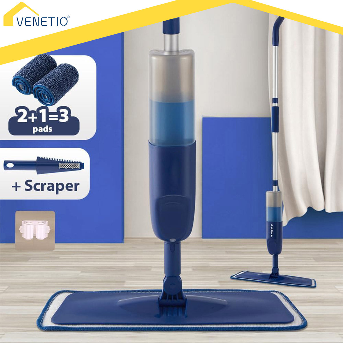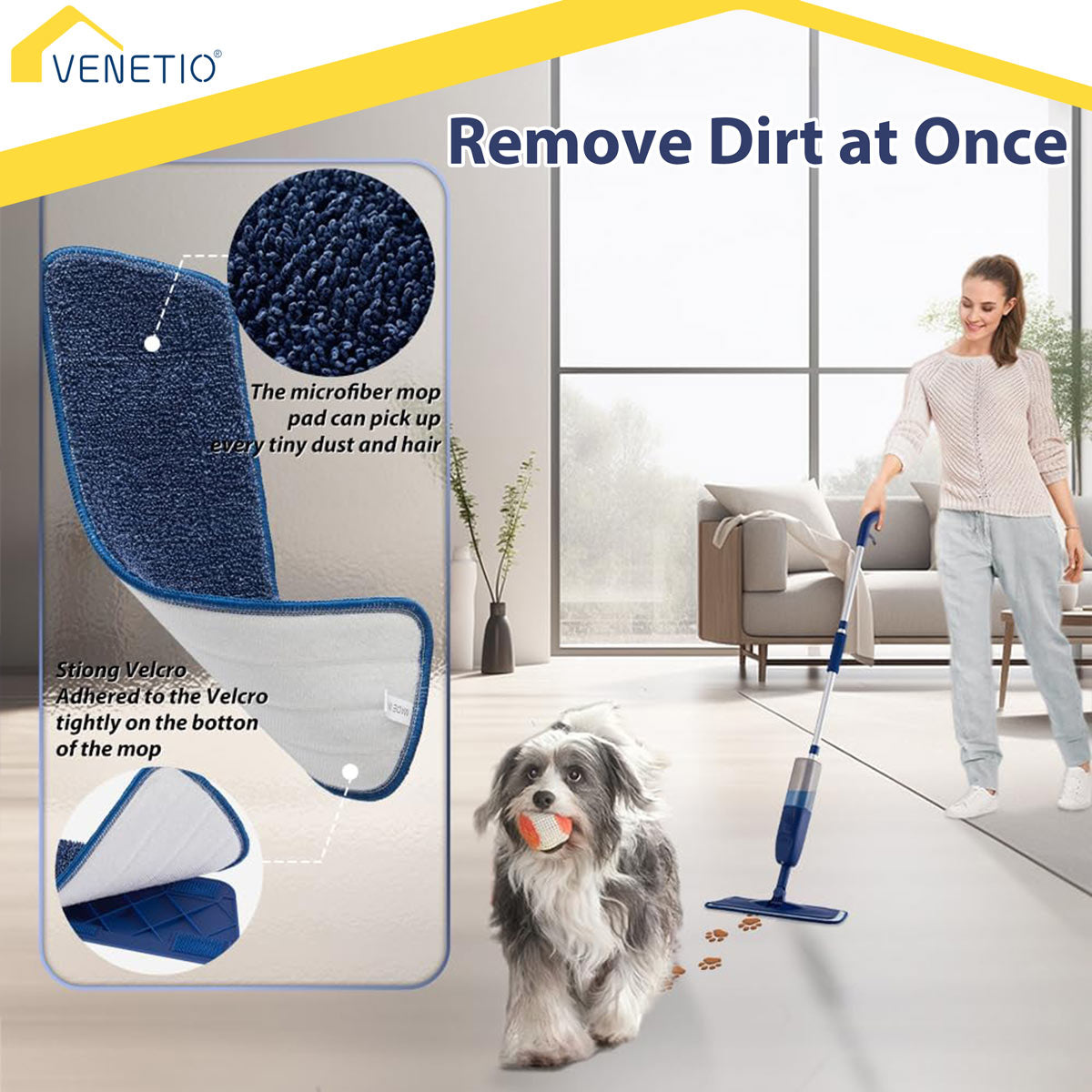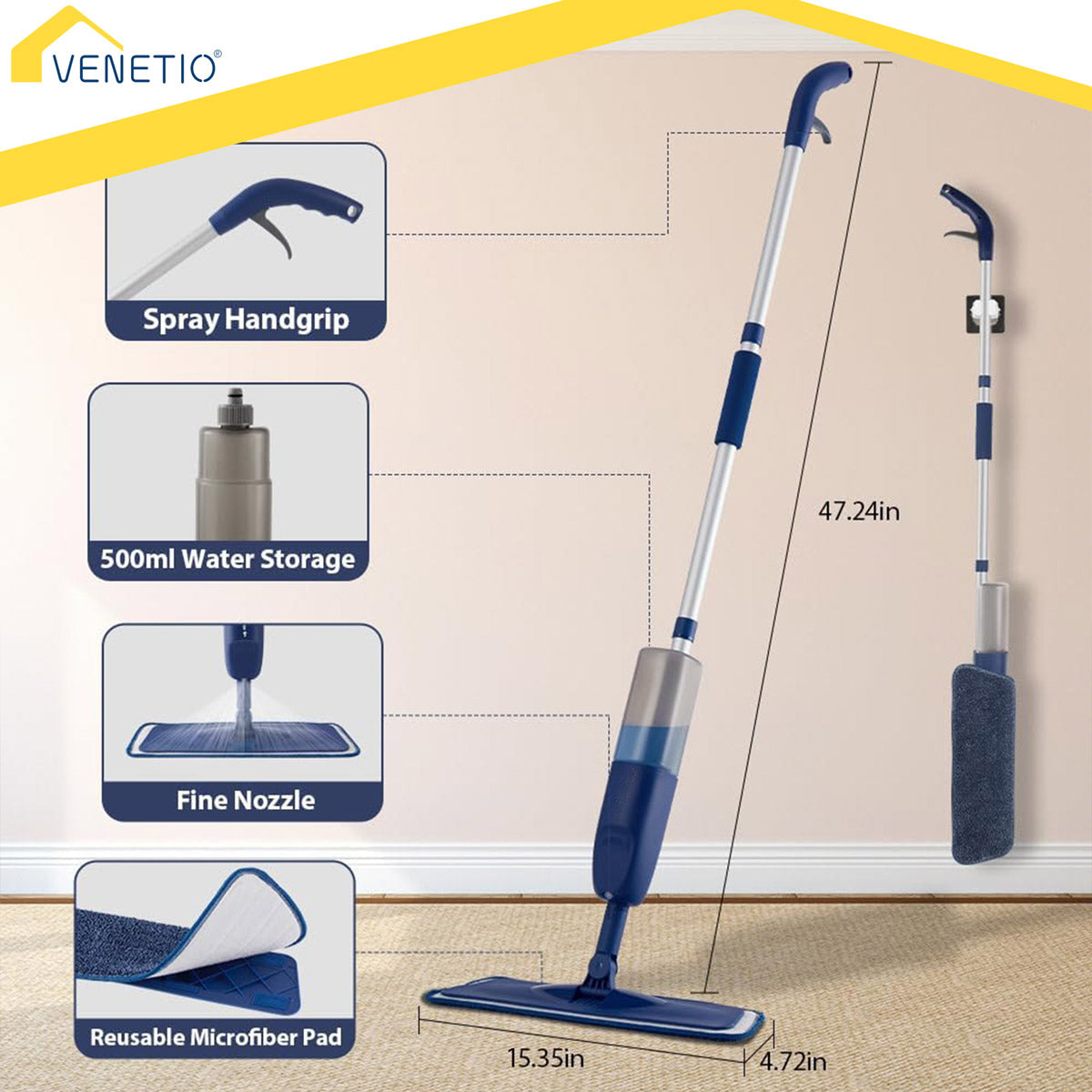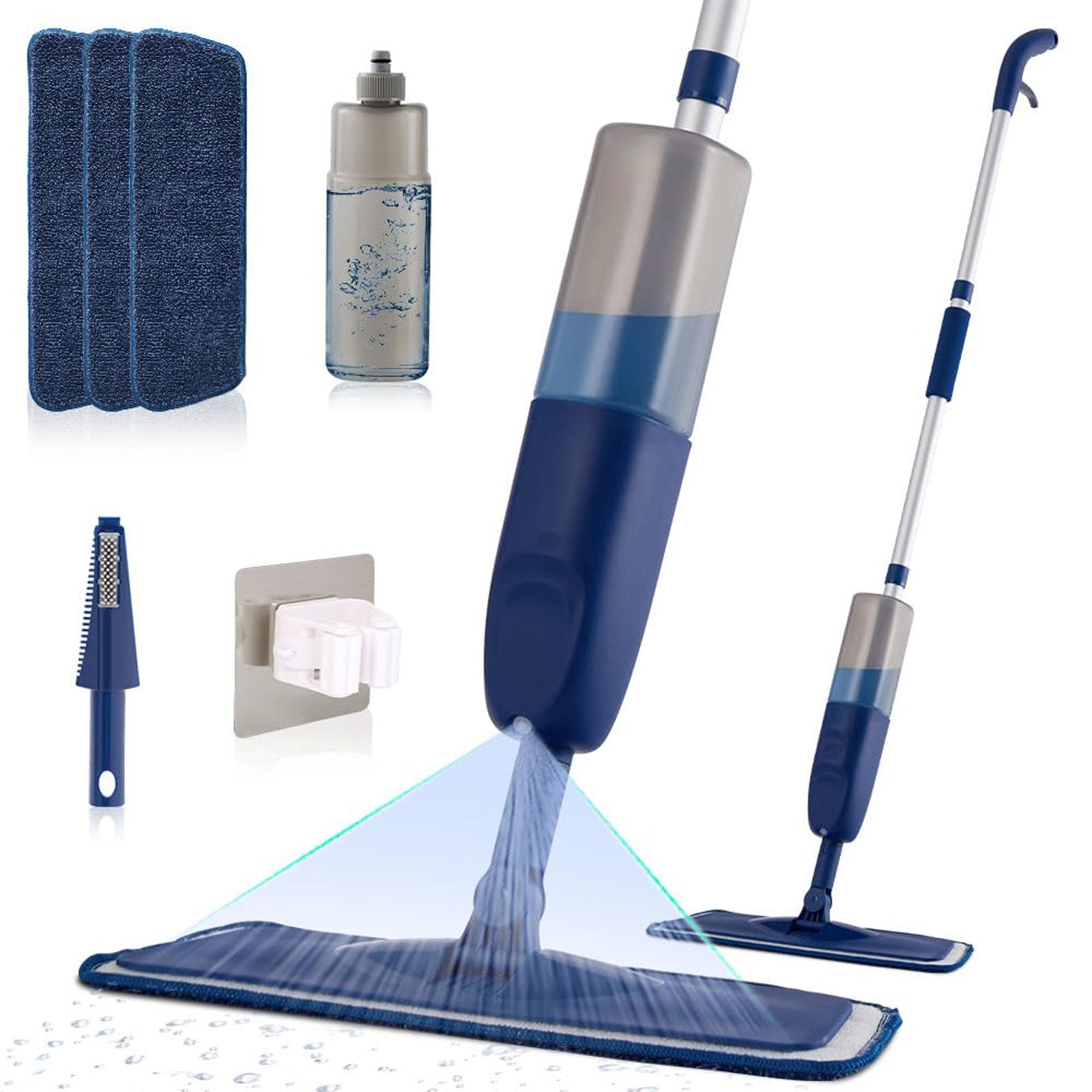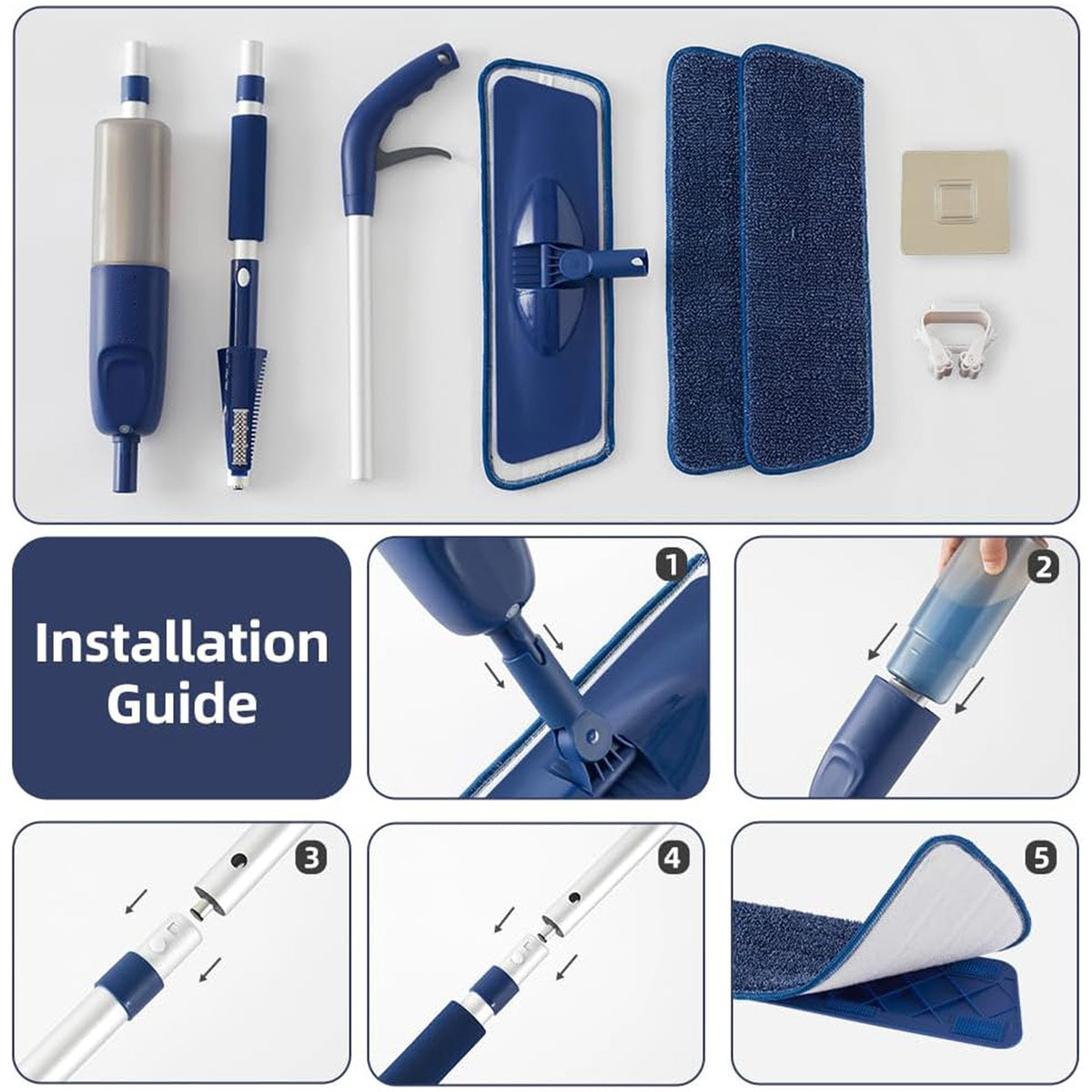 Navy Blue Microfiber Spray Mop with Reusable Pads